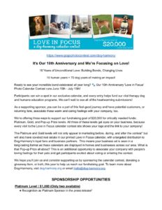- Dog-Harmony Celebrates 10 Years with “Love in Focus” Calendar Contest