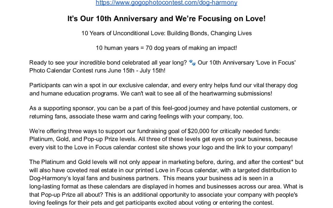 - Dog-Harmony Celebrates 10 Years with “Love in Focus” Calendar Contest