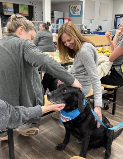 “We are always looking for new volunteers to make this program successful,” says Bown. “We need both new therapy dog teams and team support volunteers without dogs.”