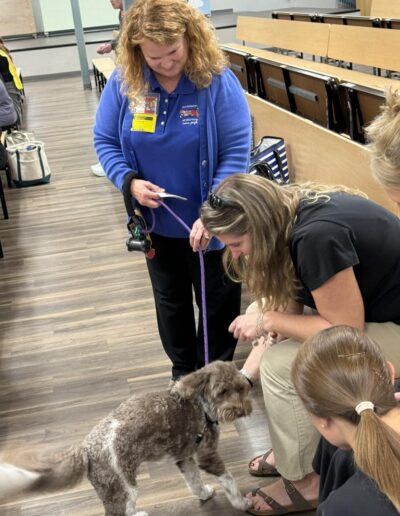 Therapy dog teams, consisting of an evaluated therapy dog and handler, support Dog-Harmony’s humane education and responsible dog care programs for children and families, helping them practice what they learn. At the end of November, 4,250 children in Okaloosa and Walton counties had attended Dog-Harmony’s humane education programs in 2025.
